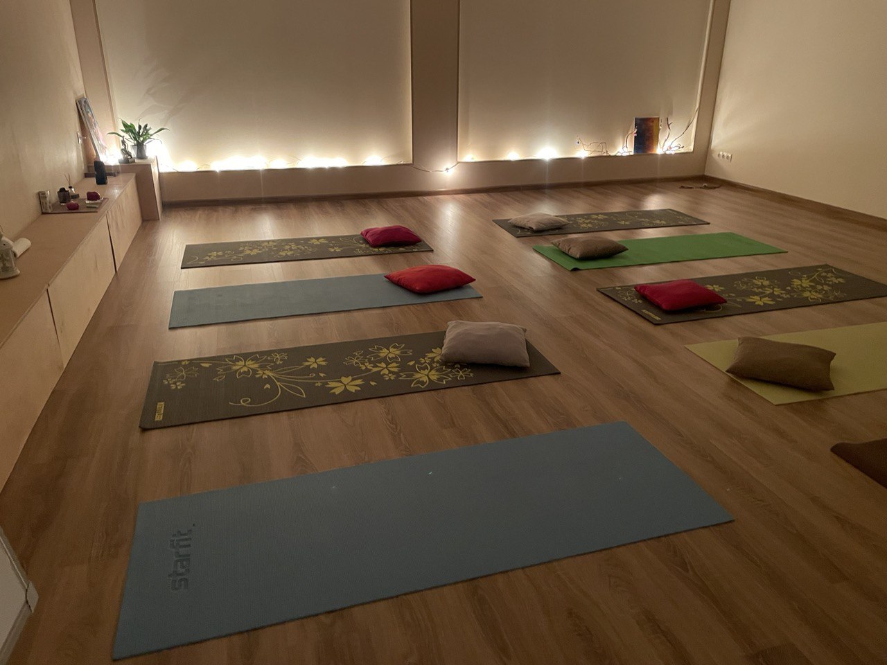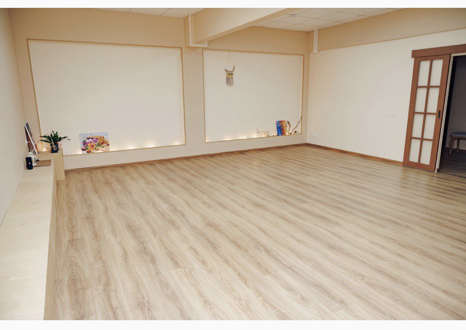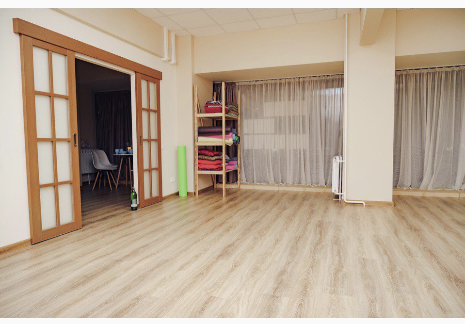 Чудесный зал для практик! Очень уютный, просторный, теплый. Можно создать любую атмосферу с разнообразной цветовой гаммой, так как там впишется действительно многое. -Ксения-