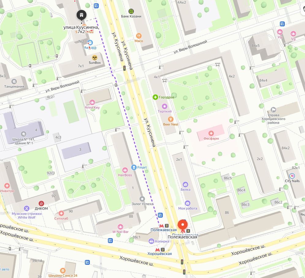 Наше пространство очень легко найти, м. Полежаевская (первый вагон из центра) выход 3 к ул. Куусинена 1 , далее 5 минут по прямой вдоль ул. Куусинена до дома 7к2. Вход стороны улицы. Наш вход находиться под вывеской цветы/йога. Далее по лестнице наверх 2 этаж